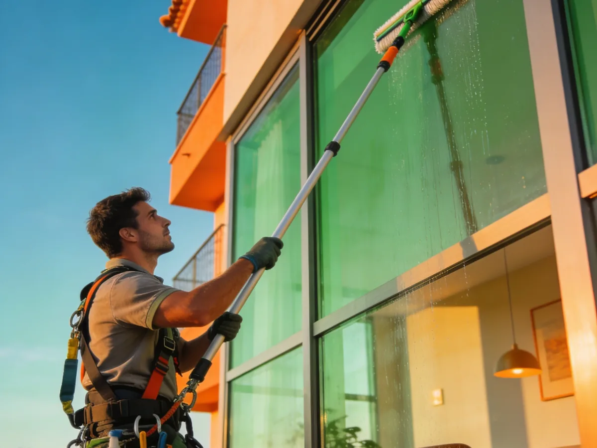 Detalle del servicio de limpieza de cristales en Palma. Todo con presupuesto cerrado por escrito y empresas verificadas.
